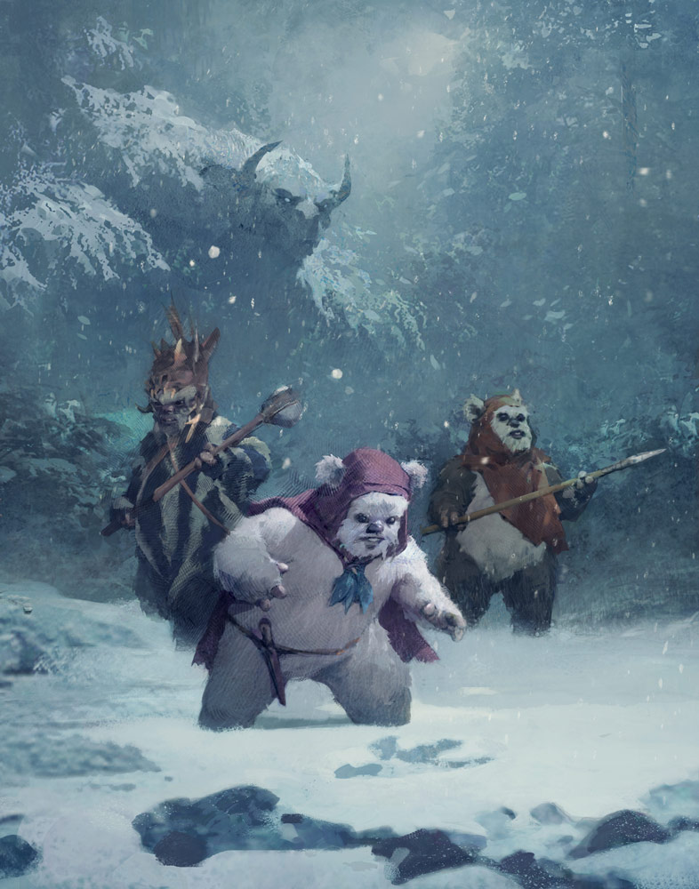 Before we wrap up, I must once again mention the beautiful illustrations by Grant Griffin, a couple of which are pictured above. When they were first revealed as part of the announcement for this book, my excitement skyrocketed by the inclusion of Stellan Gios – on the cover no less! – and in the time since, my dives into the old Ewoks cartoon and movies have deepened my appreciation for the denizens of Bright Tree Village.